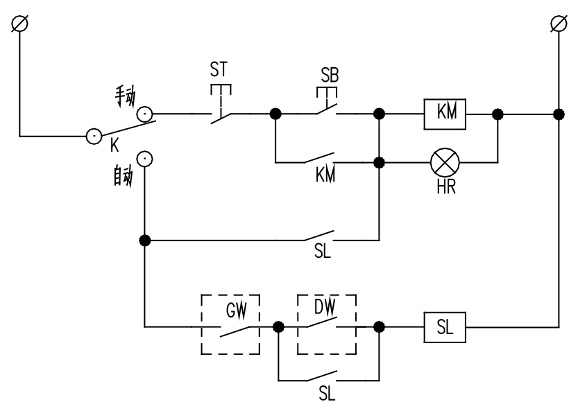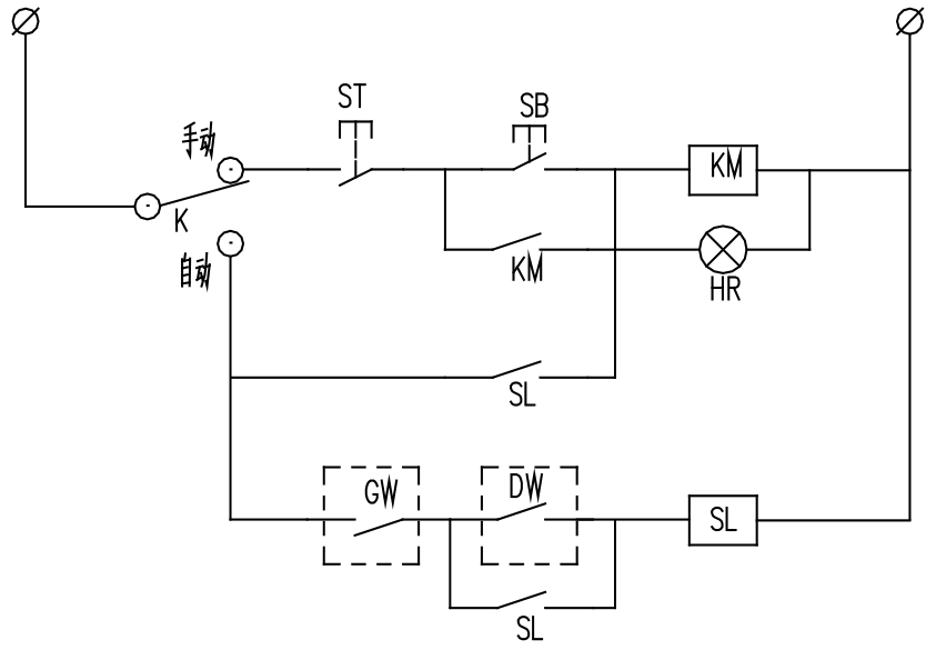 “圆环”是由同一个圆心不同直径的两个同心圆组成的,控制圆环的参数是圆心、内直径和外直径。默认情况下,所绘制的圆环为填充的实心图形,另外,当内外直径相同时,绘制的圆环为简单的圆轮廓线;当内直径为0时,绘制的圆环就为圆区域全部填充的圆饼。因此,使用“圆环”命令可以快速创建大量实心或空心的圆,所以在绘制电路图时,使用“圆环”命令要方便快捷。本例通过“圆环”命令来完善某液位自动控制器的电路图,具体操作步骤如下。