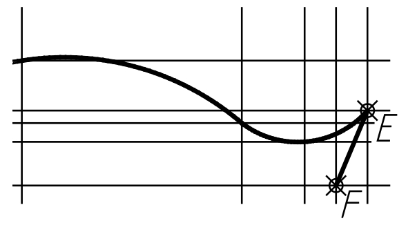 04 在命令行输入L执行“直线”命令,将圆弧端点E与中心线上的F点相连,如图2-124所示。
