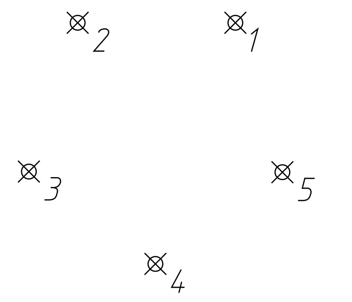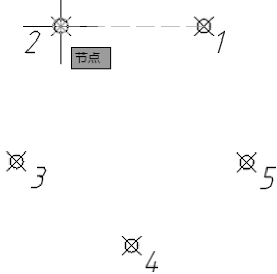 01 打开素材文件“2.3.9指定端点绘制圆弧.dwg”,素材中已经创建好了5个点,如图2-131所示。
