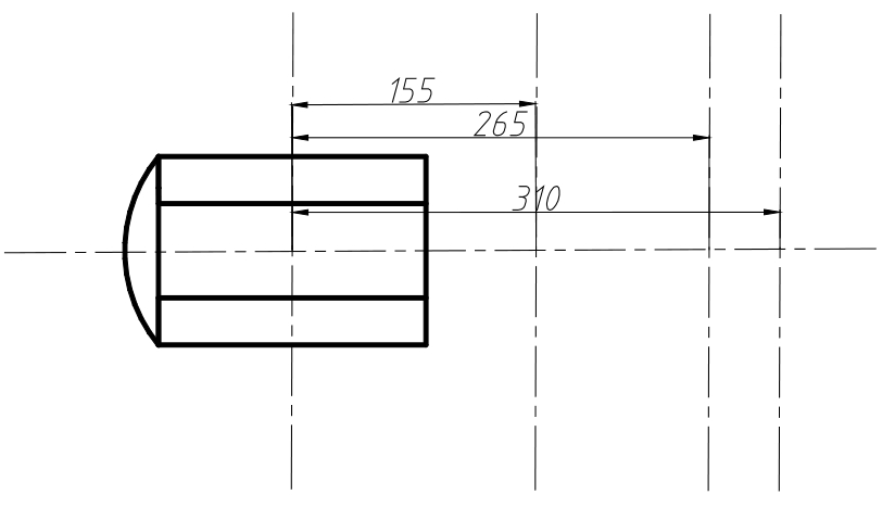 04 在命令行输入O执行“偏移”命令,绘制3条垂直中心线,将初始垂直中心线分别向右偏移155、265和310,如图2-157所示。