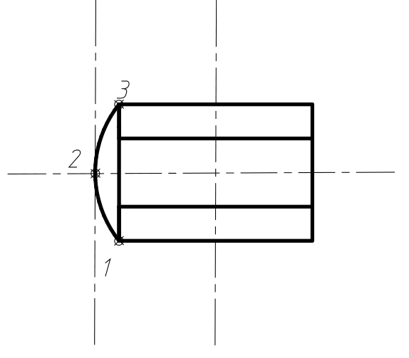 03 在命令行输入A执行“圆弧”命令,连接点1、点2、点3,绘制圆弧,如图2-156所示。