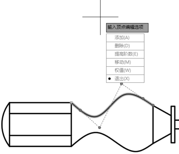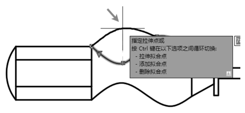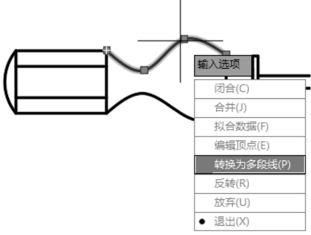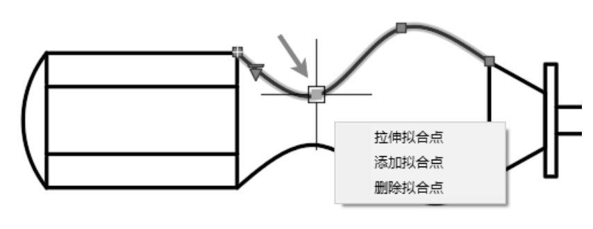 本节以在上一节中所创建的样条曲线为例,介绍编辑样条曲线的方法。通过激活样条曲线的夹点,可以调整曲线的形状,还可以将曲线转换为多段线,或者添加、删除曲线上的顶点等。编辑样条曲线的具体操作步骤如下。