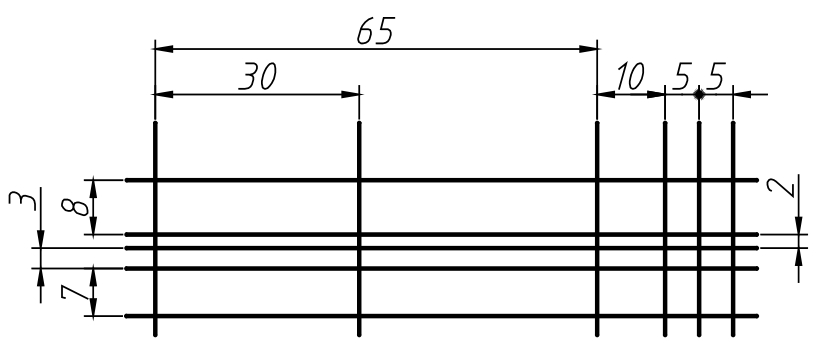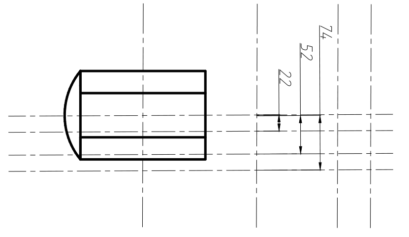 05 使用相同的方法,绘制3条水平中心线,将原初始水平中心线分别向下偏移22、52和74,如图2-158所示。