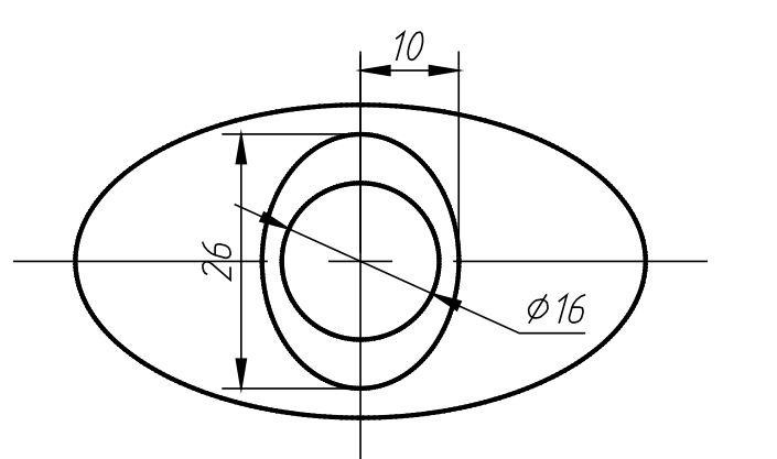 使用相同的方法,同圆心绘制长轴为26、短轴为10的椭圆;单击“绘图”面板的“圆”按钮