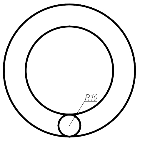 02 按空格键再次执行圆命令,输入2P,单击选择上一步所绘圆的下端点为切点,然后输入半径10,绘制小圆,效果如图2-92所示。