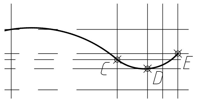 03 使用相同方法绘制,选择圆弧右端点C为起始点,指定另外的D、E两点,绘制圆弧,如图2-123所示。