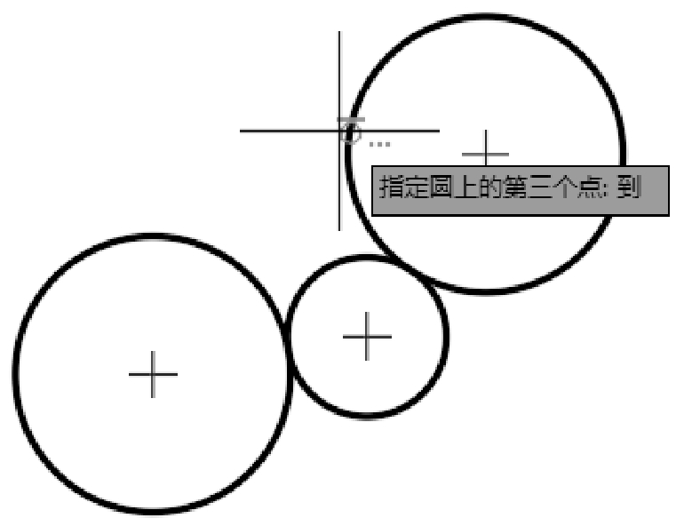 选择“相切、相切、相切”绘制圆之前,需要先绘制3个圆形,再依次指定这三个圆形上的切点来绘制圆形,具体操作步骤如下。