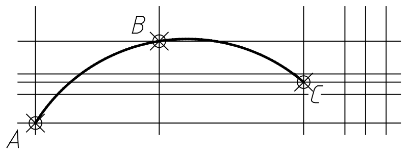 02 在命令行输入A执行“圆弧”命令,单击选择如图2-122的A、B、C三点,绘制一条圆弧。
