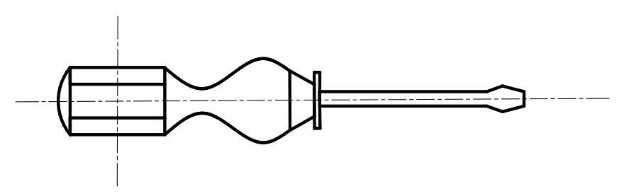 “样条曲线”是经过或接近一系列给定点的平滑曲线,它能够自由编辑,并可以控制曲线与点的拟合程度。在景观设计中,常用来绘制水体、流线形的园路及模纹等;在建筑制图中,常用来表示剖面符号等图形;在机械产品设计领域,则常用来表示某些产品的轮廓线或剖切线。本例的螺丝刀图形,涉及较多命令,尤其是中间连接部分的曲线过渡,能否灵活运用样条曲线便是绘制此图的关键,下面介绍此图的绘制过程。