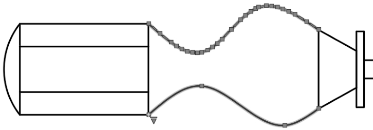 02 在红色顶点上单击以激活顶点。向上移动光标,调整夹点的位置,影响曲线的形状,如图2-167所示。