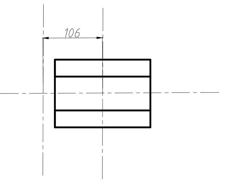 02 在命令行输入O执行“偏移”命令,将初始垂直中心线向左偏移106,如图2-155所示。