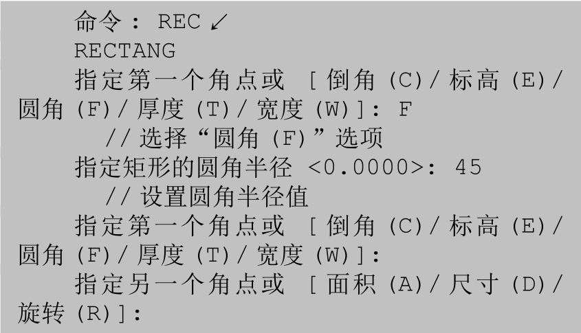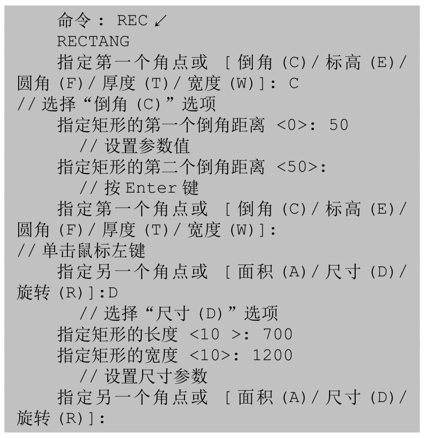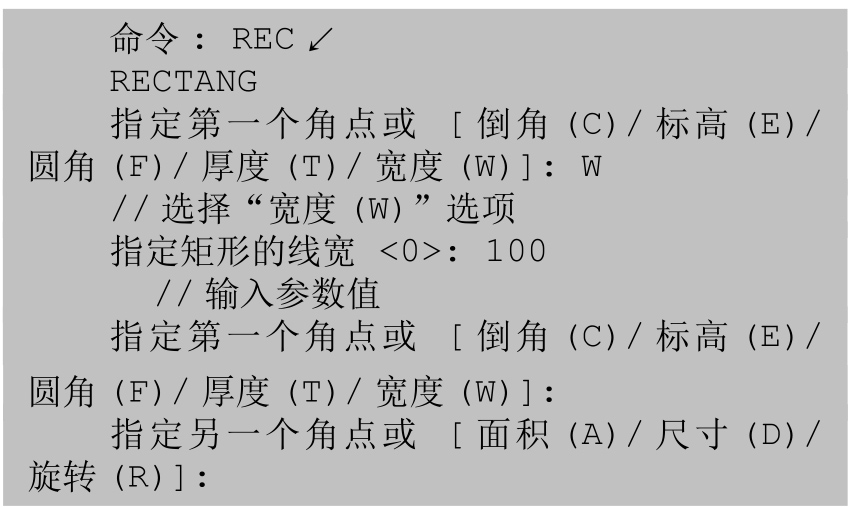 01 在命令行输入REC执行“矩形”命令,命令行提示如下。