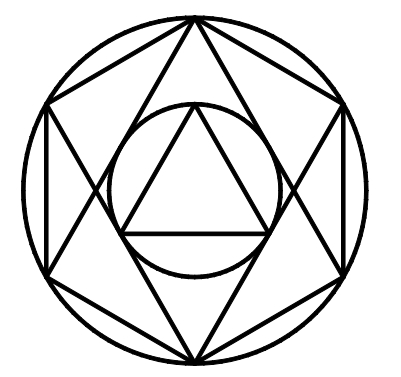 03 使用相同方法,设置侧面数为3,在小圆中绘制一个正三角形,最后利用“直线”命令连接各个端点,最终效果如图2-208所示。