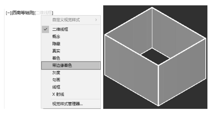 为矩形添加厚度后,在二维视图中无法观察效果,必须要切换到三维视图。用户可以修改视觉样式,观察三维矩形的显示效果。设置厚度绘制矩形的具体操作步骤如下。