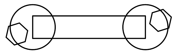 06 在命令行输入REG执行“面域”命令,依次选择矩形、多边形和圆。在命令行输入UNI执行“并集”命令,依次选择矩形和圆,修剪图形,如图2-214所示。