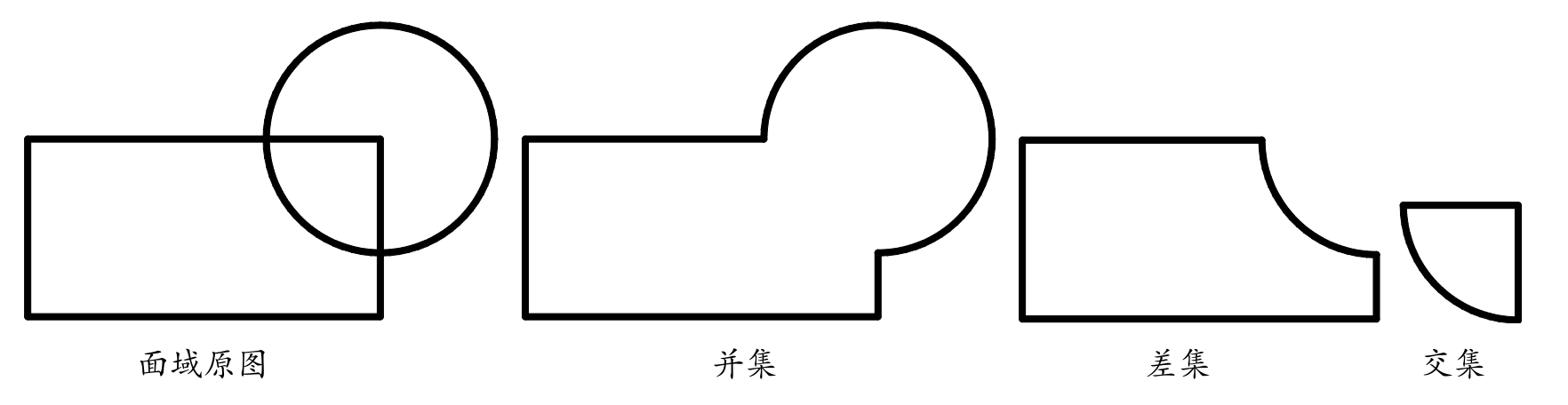 布尔运算是数学上的一种逻辑运算,用在AutoCAD绘图中,能极大地提高绘图的效率。需要注意的是,布尔运算的对象只包括实体和共面的面域,普通的线条图形对象无法进行布尔运算。通常的布尔运算包括并集、交集和差集3种,如图2-216所示。