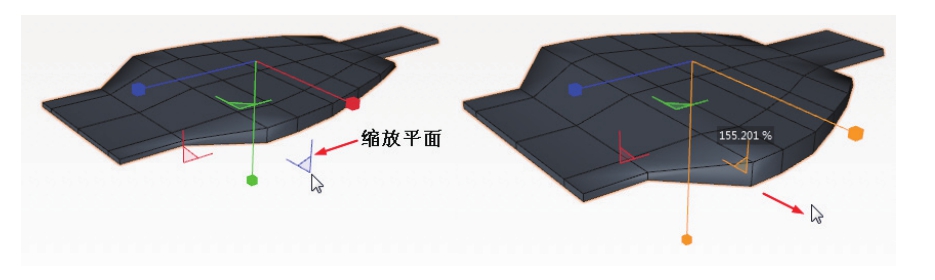 还可以通过拖动缩放操控器中的缩放平面,在所选平面上进行两个方向的缩放操作,如图2-44所示。