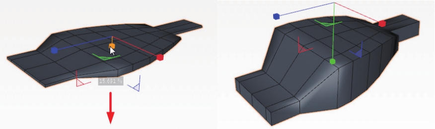 选中缩放操控点并拖动,可以将对象进行轴向缩放,如图2-46所示。