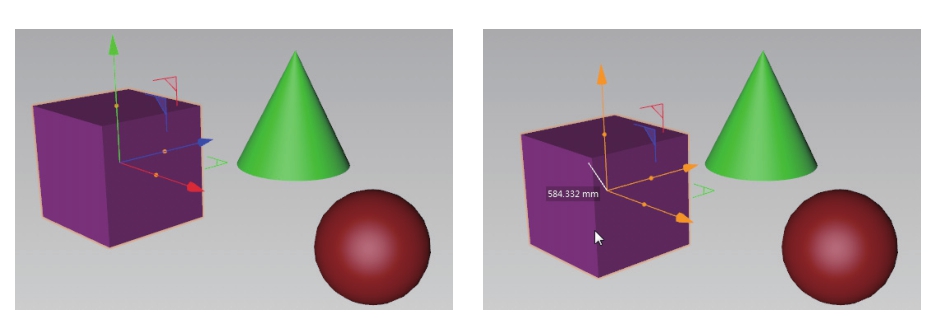 前面介绍的是通过操控器来操作对象,这里可以通过配合坐标系的轴来操作对象,例如在已经激活了“移动”工具