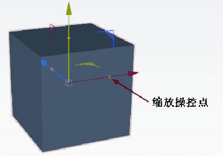 当创建基本体(如长方体、球体、圆柱体等)后,基本体处于可编辑状态,同时在基本体模型上显示移动操控器,在移动操控器的操控轴时会显示一个操控点,这个操控点称为“缩放操控点”,如图2-45所示。