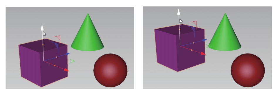 ,在视图中选取要移动的对象(图2-29中的立方体),对象中显示移动操控器,拖动该对象可以在空间中任意移动,如图2-39所示。