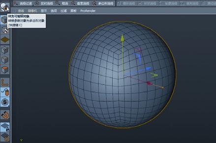 选中球体,在左工具栏中单击“转为可编辑对象”按钮
