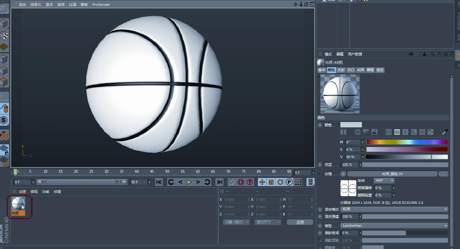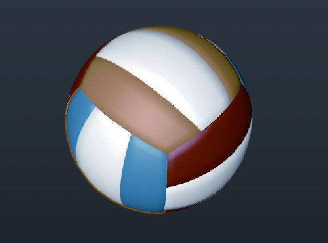 21 同理,其余模型上也按此方法进行材质添加,颜色可以是其他的颜色。最终完成的排球模型效果如图3-184所示。