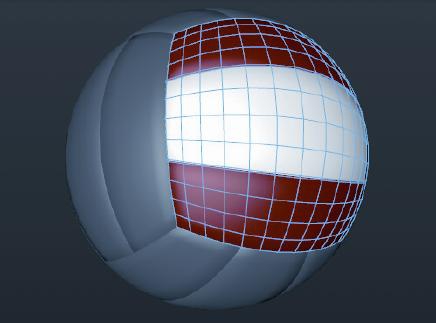 17 这样也就完成了排球的4个区域的创建,最后还剩下2个区域,也按旋转复制的方法来操作,旋转后注意观察皮块的方向,不要与相邻皮块的方向相同,最后旋转完成的结果如图3-180所示。