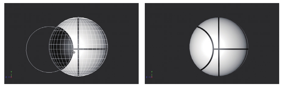 ,绘制如图3-195所示的圆,圆心在球体边缘上。