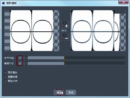 19 执行“过滤”|“模糊”|“高斯模糊”命令,打开“高斯模糊”对话框。调整“水平半径”和“垂直半径”值为15,单击“确定”按钮完成设置,如图3-204所示。