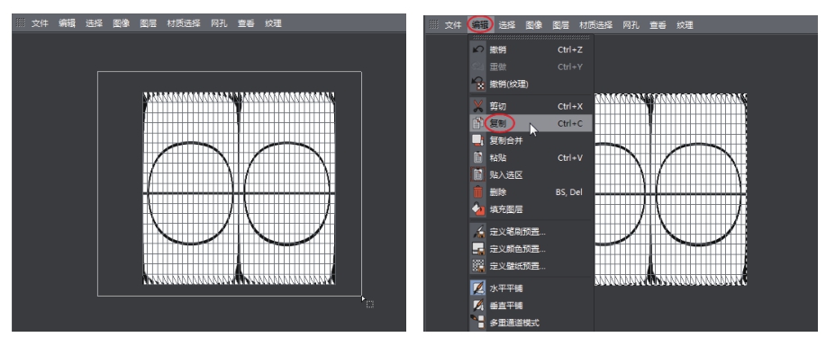 ,并到右侧面板中框选纹理图案,并在该面板的菜单栏中选择“编辑”|“复制”命令,将纹理复制出来,如图3-201所示。