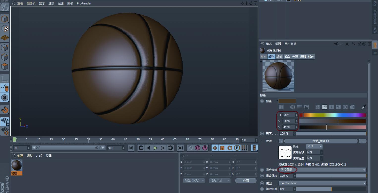 22 在“材质”属性面板的“混合模式”下拉列表中选择“正片叠底”选项,然后设置颜色为棕色,如图3-207所示。
