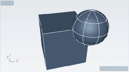 01 首先创建一个立方体和一个球体,并通过移动操控器将球体移至立方体的一个角点上,如图4-13所示。