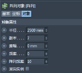 “阵列对象【阵列】”属性面板中,“基本”选项卡和“坐标”选项卡都是各工具通用的,前面章节已经介绍过,下面介绍“对象”选项卡中主要选项的含义。