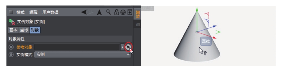 再去选择参考对象(可以到视图中选择,也可以到“对象”管理器中选择),如图4-22所示。