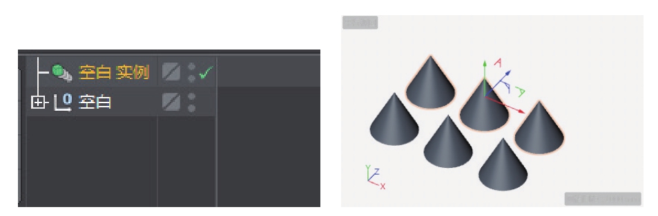 “实例”工具一次只能创建一个副本,如果事先选中了原始对象,“对象”管理器中的实例图标将会是