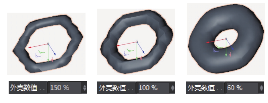 05 修改“外壳数值”,可以得到不同的外壳紧密度,如图4-32所示。