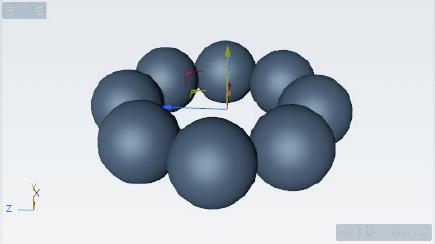 03 此时视图中的球体自动完成圆形阵列,如图4-5所示。可以看到,C4D是以世界坐标系的原点作为圆形阵列中心的。