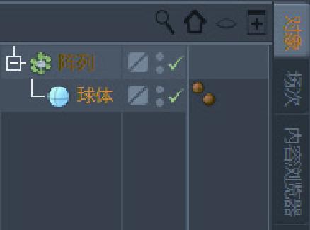 ,并在“对象”属性面板中将“球体”对象拖至“阵列”对象中,成为其子对象,如图4-4所示。