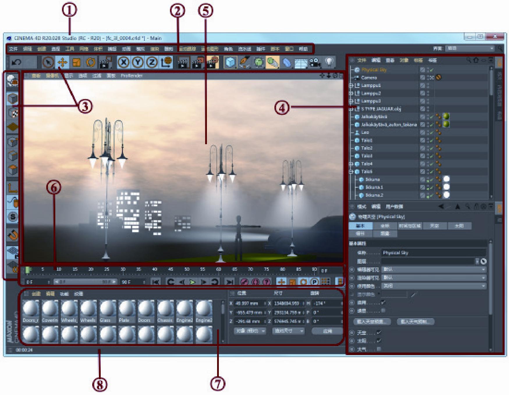 ②菜单栏:提供CINEMA 4D中许多常用的命令。