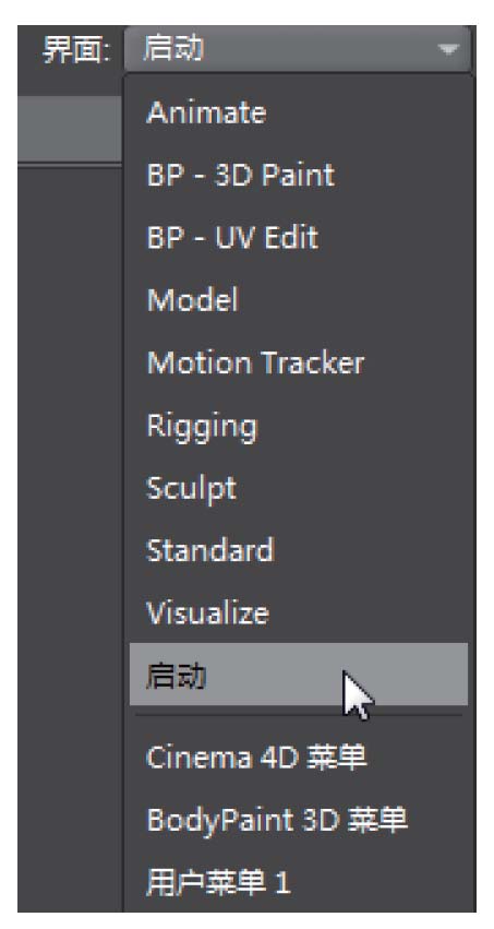 01 在菜单栏右侧的“界面”下拉列表中列出了系统定义的界面风格,默认为“启动”风格,如图1-10所示。可以选择一种适合自己的界面,当然也可以按下面的步骤来自定义界面元素。