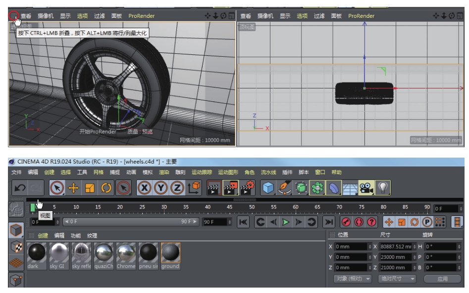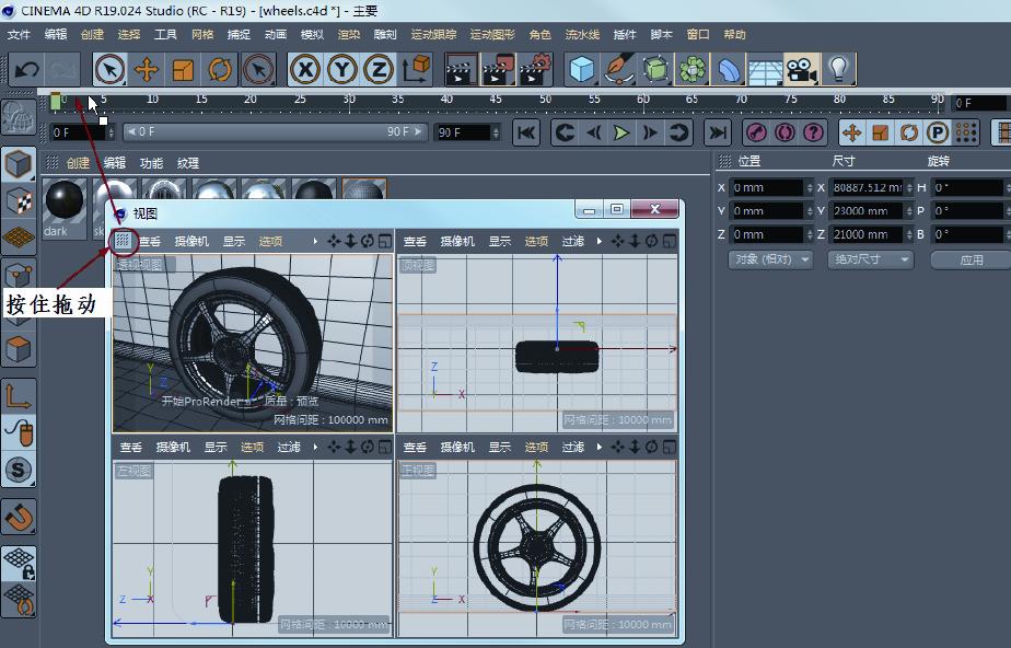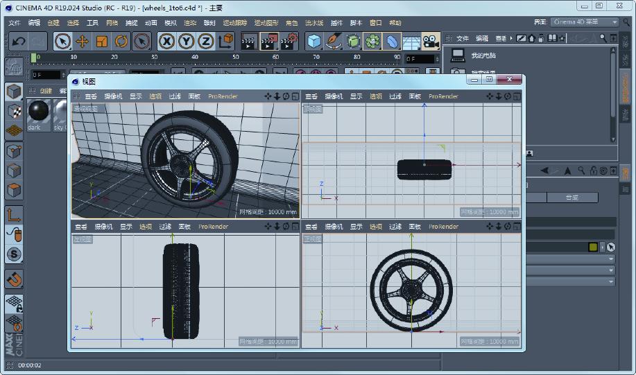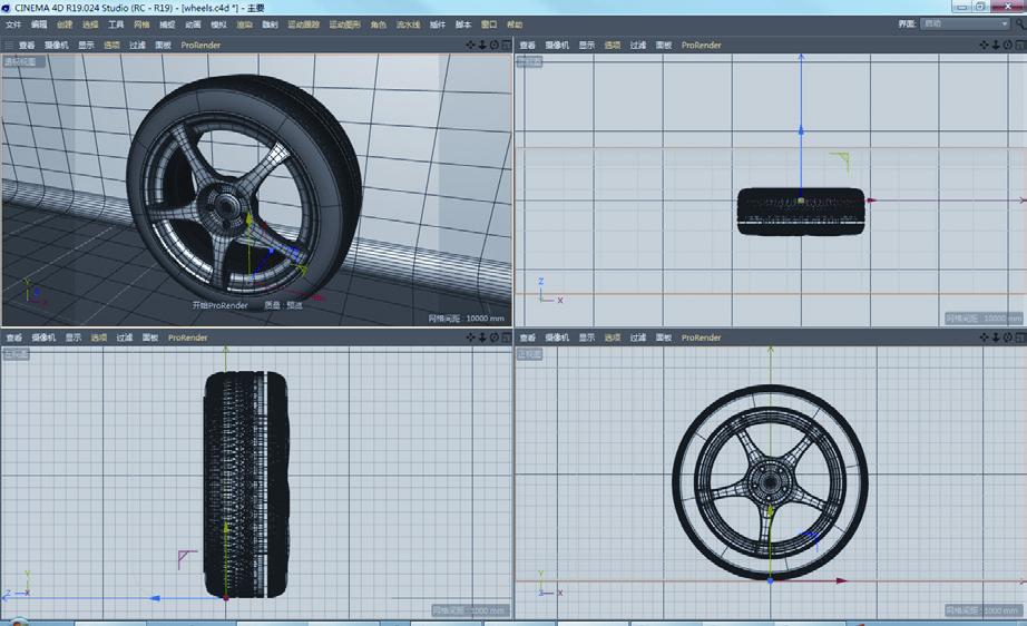 01 打开本例源文件“动手操作\源文件\Ch01\车胎\ wheels.c4d”,如图1-39所示。