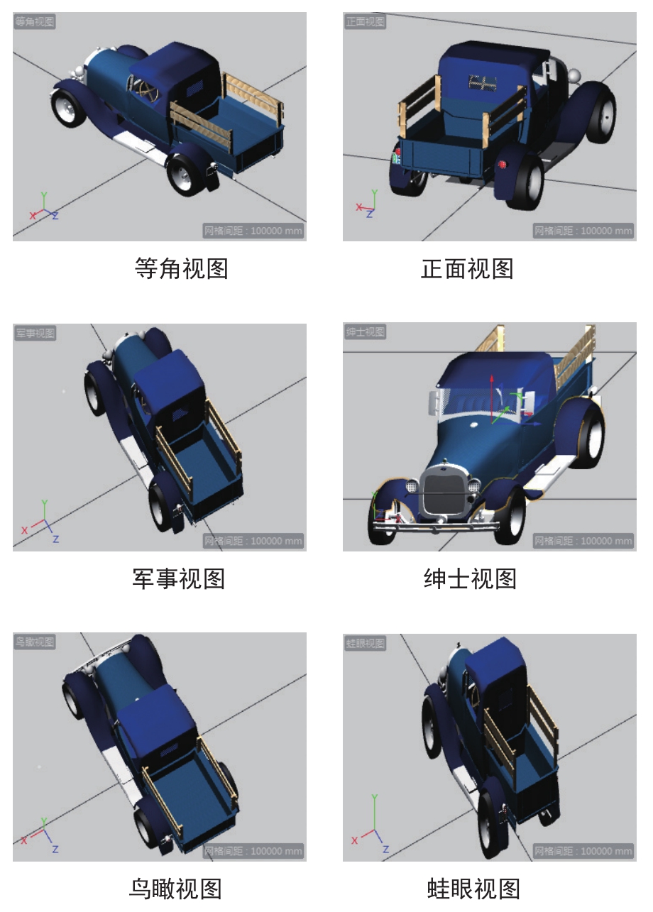 ● 左视图、右视图、正视图、背视图、顶视图和底视图:系统给出6个基本视图,如图1-20所示。