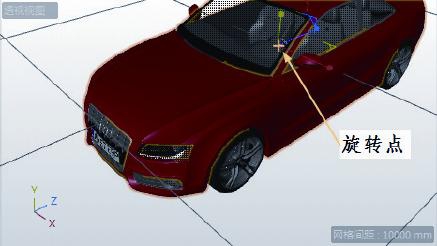 并拖动鼠标,此时视图中出现一个旋转点,视图被旋转,如图1-33所示。此旋转点可通过“摄像机”|“导航”子菜单中的命令来设置。建议设置为“对象模式”,以便于绕对象中心点旋转可以查看全貌。
