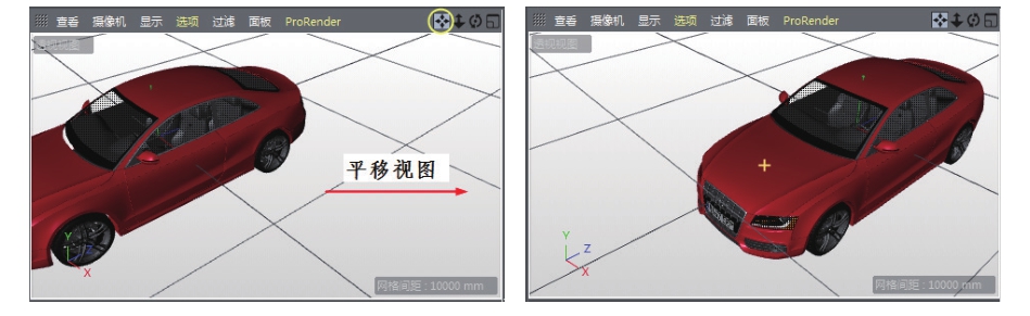 在当前视图按住“平移”按钮