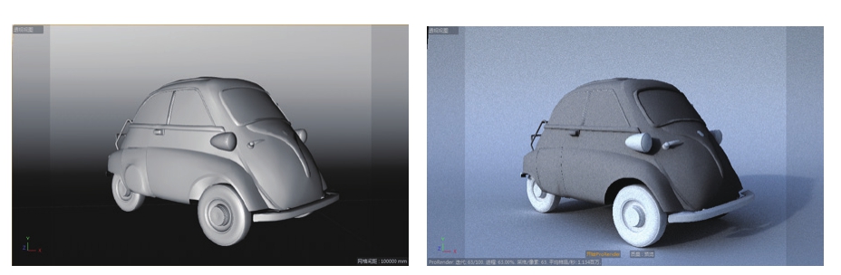创建一个模型后,选择ProRender|“开始ProRender”命令后,开始模型的实时渲染。也就是说,当为对象添加材质或贴图后,可以实时观察到渲染效果。如图1-27所示为ProRender实时渲染的效果。