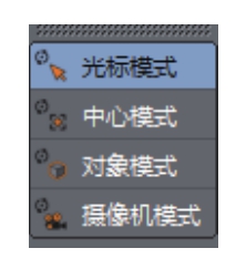● 导航:每个视图中都有独立的摄像机。当需要旋转视图时,可以定义自己的旋转点,导航有4种模式,也就是可以按4种方式来设置视图的旋转中心,如图1-17所示。其中,“光标模式”为摄像机将围绕所选对象点旋转;“中心模式”为摄像机将围绕屏幕中心旋转;“对象模式”为摄像机围绕所选对象的中心进行旋转;“摄像机模式”为将以摄像机的位置点进行旋转。