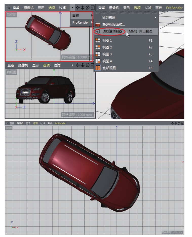 来切换,另一种方法是在某单一视图中单击鼠标中键进行视图切换。