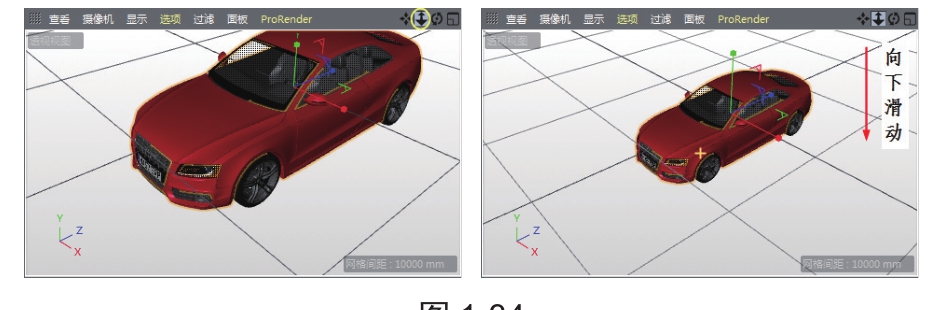 并向下拖动鼠标,视图将被缩小,如图1-34所示。反之,按住“缩放”按钮