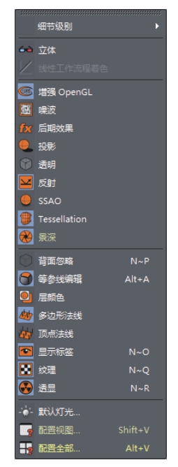 “选项”菜单主要用于模型的显示精度控制,以及投影、反射、景深等的配置与设置,“选项”菜单如图1-24所示。